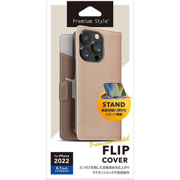 ■商品名:iPhone 14 Pro 6.1インチ 用 手帳型 フリップ カバー プレミアムモデル ベージュ